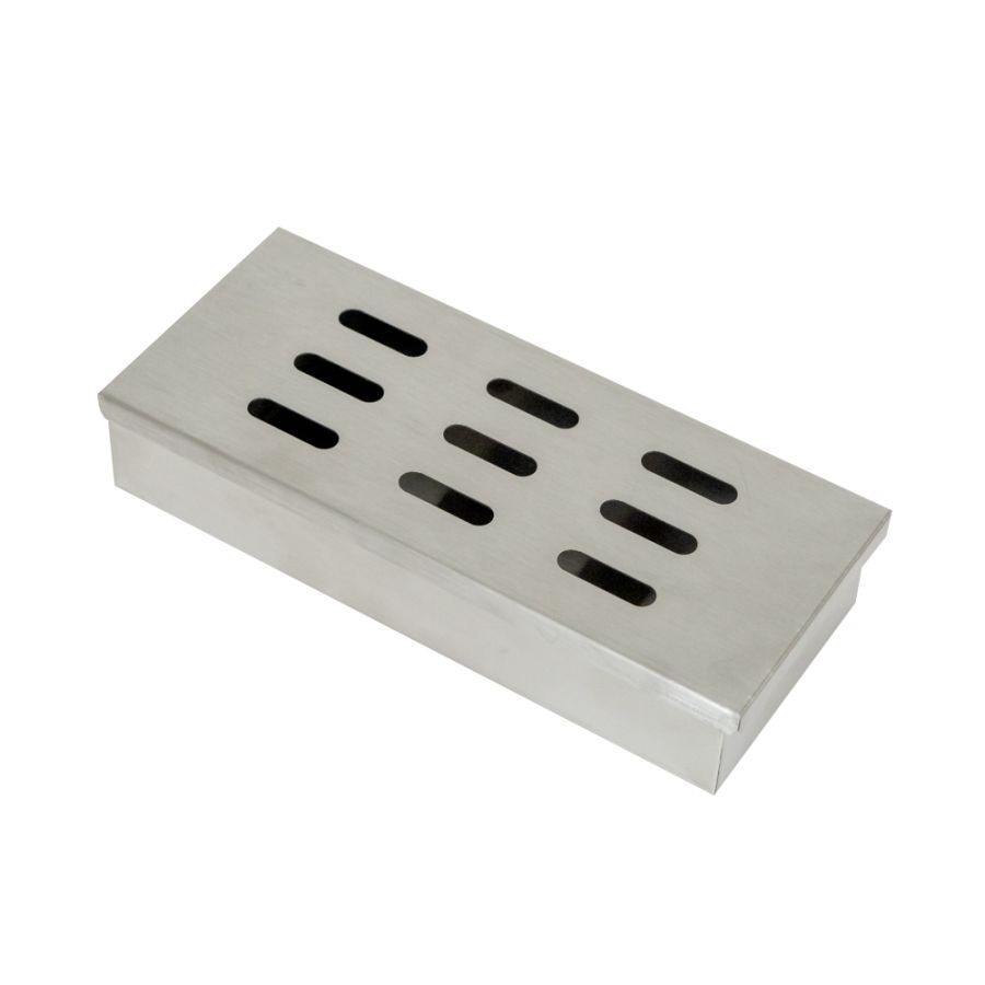 Bequeme Räucherbox für Späne/Chips, hergestellt aus rostfreiem Stahl, mit der die Räucherspäne nicht verstreut werden können und die Ihnen ermöglicht, sie während des Räuchervorgangs schnell und einfach auszutauschen. Die Handhabung der Box ist einfach – befeuchten Sie die Späne, legen Sie sie in die Box, schließen Sie den Deckel und platzieren Sie sie auf die Holzkohle oder den Heizstab. Sehen Sie zu, wie die Magie geschieht.