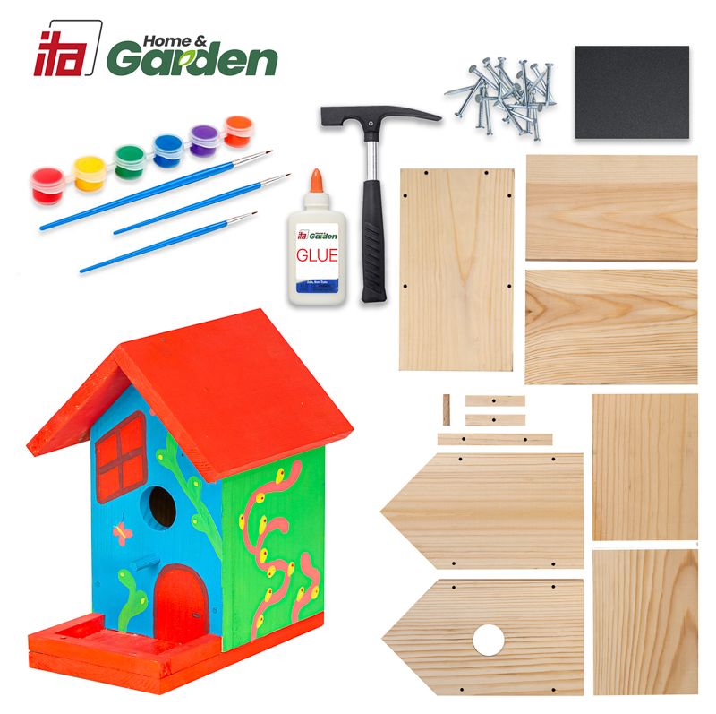 Всяка къща за птички е изработена от естествена иглолистна дървесина и в комплекта получавате всичко необходимо, за да сътворите произведение на изкуството, да дадете воля на въображението на децата и да внесете частица от природата близо до себе си.